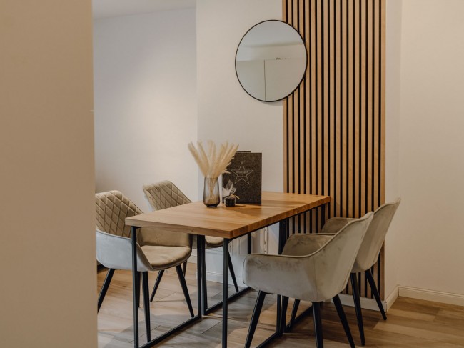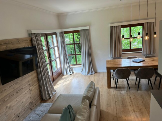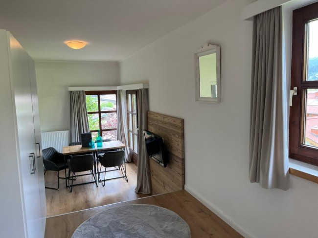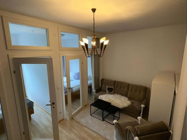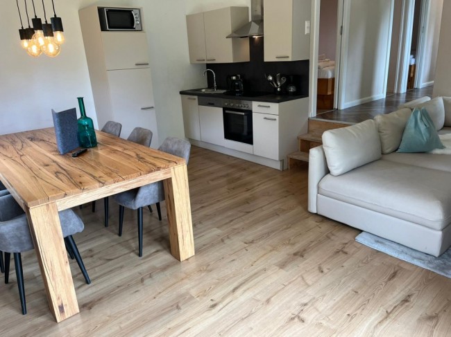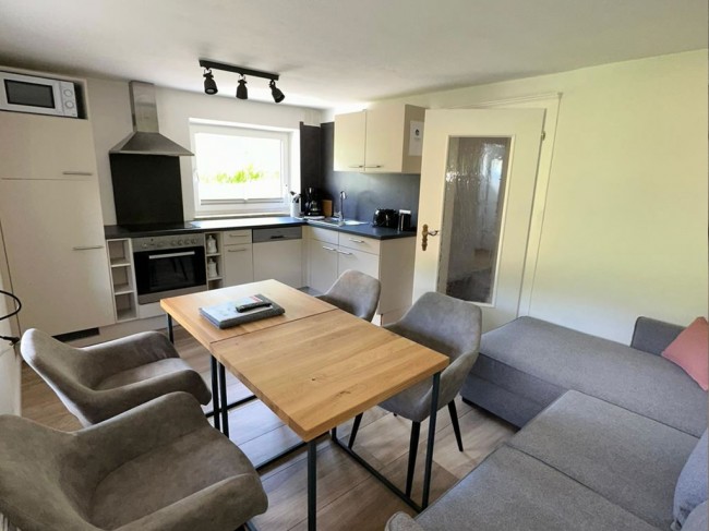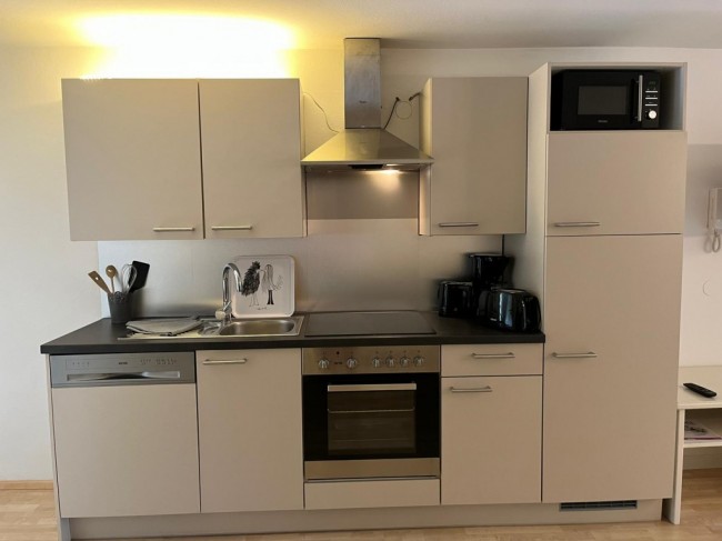 Das Appartement verfügt über ein Schlafzimmer mit Doppelbett und einen gemütlichen Wohnschlafraum mit Ausziehcouch. Der Küchenbereich verfügt über eine gemütliche Essecke und eine Küchenzeile, ausgestattet mit einem Elektroherd mit Ceranfeld und Backrohr, Geschirrspüler, Mikrowelle, Kaffeemaschine, Wasserkocher und einem Kühlschrank mit Gefrierfach. Das Badezimmer ist mit einer Dusche ausgestattet, Bad und WC sind getrennt.