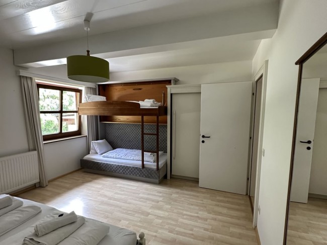 - 1 kleines Zimmer mit Stockbett (90 x 200cm) für die Kinder