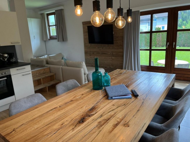 Die Hotel-Leistungen in Altenmarkt (wie Kinderclub, Gartenwelt mit Badesee, Wellnessbereich, ...) sind bei Buchung des Appartements nicht inkludiert und können auch nicht separat dazu gebucht werden. Gerne können sie ab voraussichtlich Mitte Dezember in unserem s´Kessei a la carte Essen, auch Frühstück möglich!