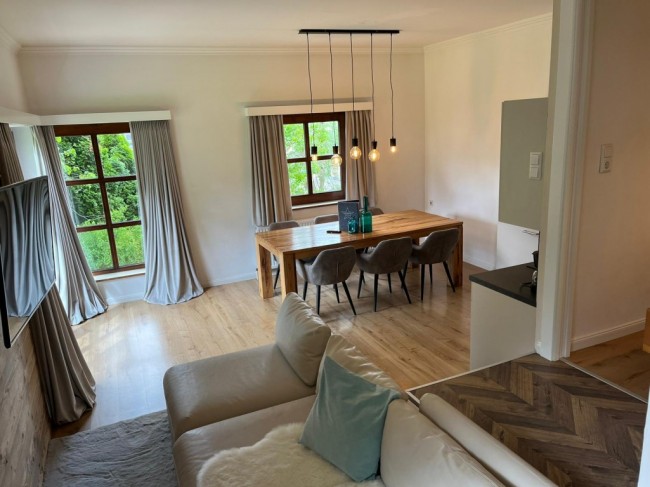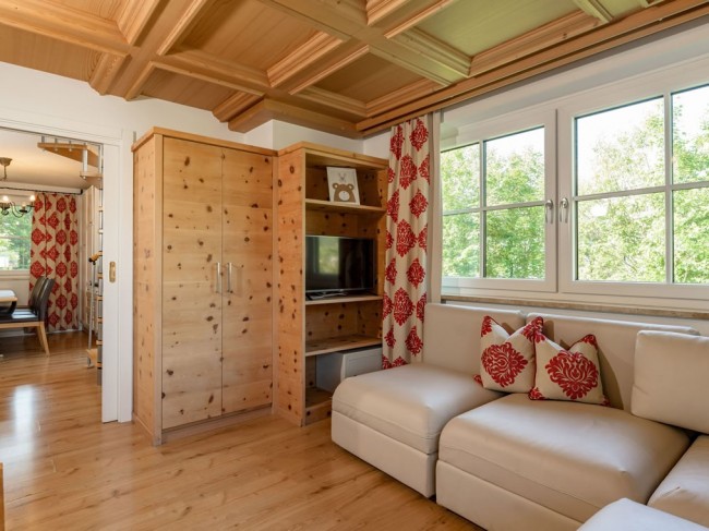 Das Appartement verfügt über zwei Schlafzimmer mit Doppelbett und einen Wohnraum mit einer gemütlichen Couch ausgestattet ist. Die sonnendurchfluteten Schlafräume sind nach Südwesten ausgerichtet und erhellen das gesamte Appartement. Der höher gelegene Küchen- & Essbereich ist mit dem Wohnzimmer über einige Stufen verbunden. Die neu errichtete Küchenzeile verfügt über einen Elektroherd mit Ceranfeld und Backrohr, Geschirrspüler, Mikrowelle, Kaffeemaschine, Wasserkocher, Spüle und einen Kühlschrank mit kleinem Gefrierfach. Badezimmer und WC sind getrennt und das geräumige Badezimmer ist mit einer Dusche ausgestattet. Das Appartement befindet sich im Parterre und bietet einen unbeschreiblichen Blick auf Eben im Pongau.