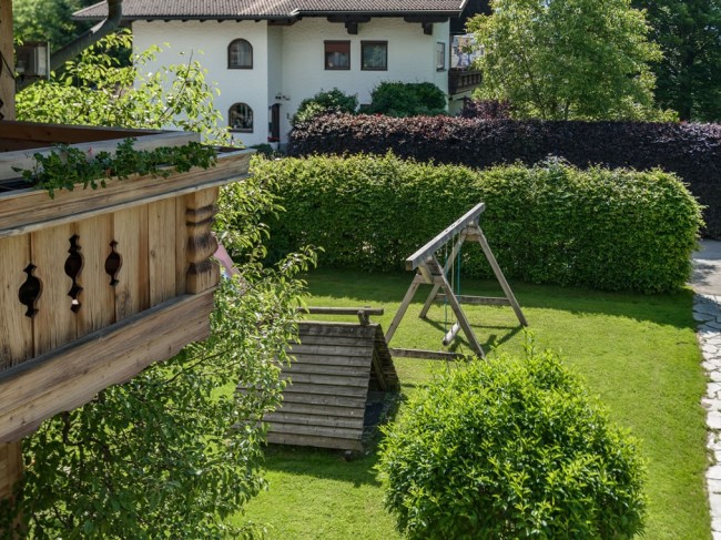 Das Appartement befindet sich im ersten Stock des Hauses und verfügt über zwei Schlafzimmer mit Doppelbett. Über den Koch-Essbereich gelangt man auf den weitläufigen Balkon. Rund um das Haus befindet sich eine kleine Gartenanlage mit Kinderspielplatz zur gemeinschaftlichen Nutzung.